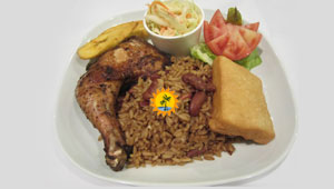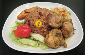 | Rice and peas,curry chicken,salad,stir fry Vegi and Plantain. | ||